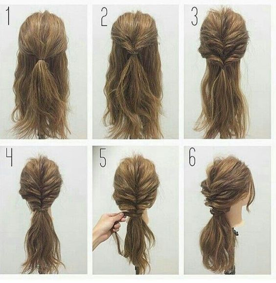 - 將兩束頭髮綁在一起固定,在固定處繞一圈頭髮蓋住髮圈