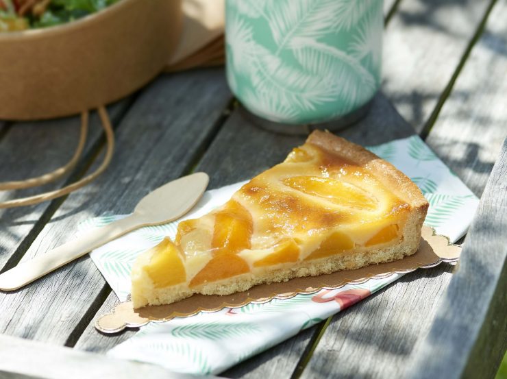 現烤專案(Bake-in)亦推出法國進口的「水蜜桃塔」,以酥脆塔皮搭配內餡加入大量蜜漬希臘黃水蜜桃切片,多款糕點帶來滿滿幸福的甜美夏日。